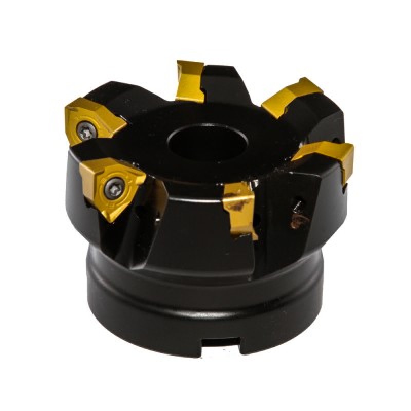 600.08.SM Shoulder shell milling cutter utilizes negative inserts and very positive chipbreaker:
