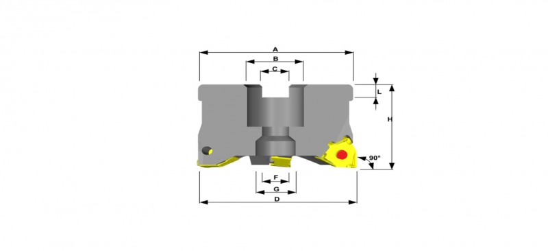 It has 90° approach angle, 0° relief angle but positive geometry to reduce the cutting force. Coolant thru capability.