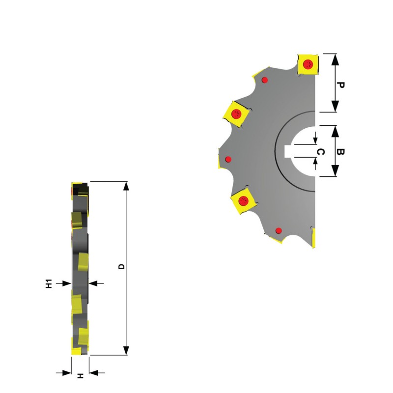 938 It is a disc type grooving and slitting cutters carryng tangentially clamped inserts with 4 cutting edges;
