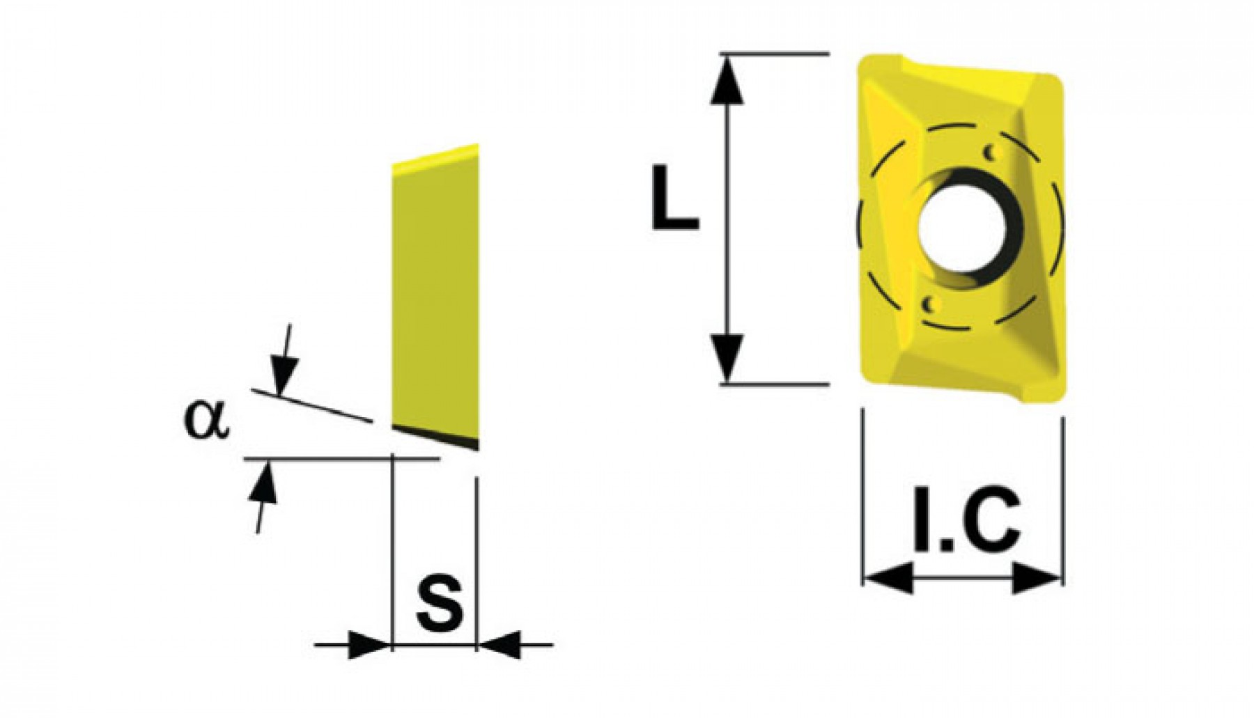 This insert fits into the 924 & 923 (APET 10), 920 & 921(APET 16) milling cutters. Its chipbreaker is suitable to work non ferrous material, expecially aluminum.