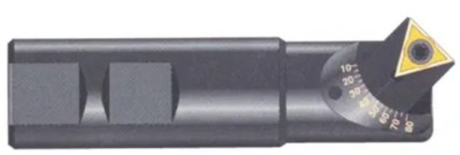It mounts a standard TCMT insert and capable to countersink and chamfer any angle from 10º to 80º.