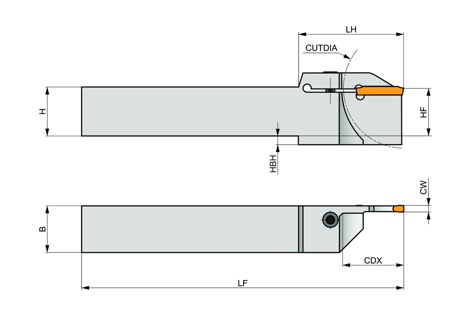 THGPR/L Multi directional cut-off and grooving holder long series. Thanks to the long clamping system, it allows deeper applications than THDP.