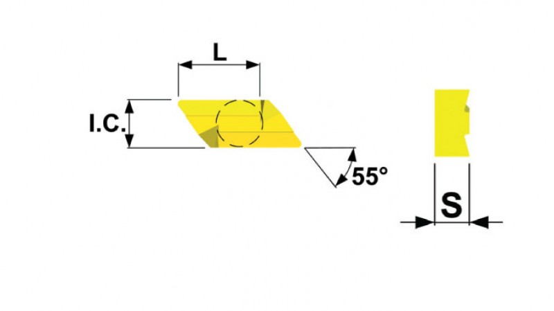 55° parallelogram inserts for profiling. Negative along the cutting edge and positive flank along the narrow edge.