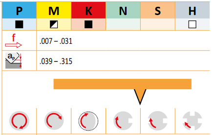 This chipbreaker is recommended for fine to heavy machining of steels.