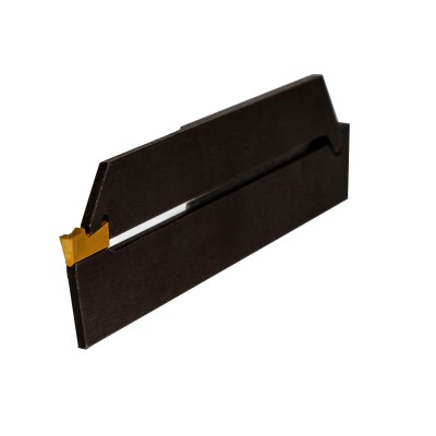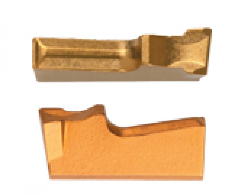 Single end cut-off carbide insert. Recommended to be used for machining of steel and cast-iron. 8° front angle to reduce pip and burr on the left hand side. It will be discontinued and can be replaced with DPL or GPL insert line.