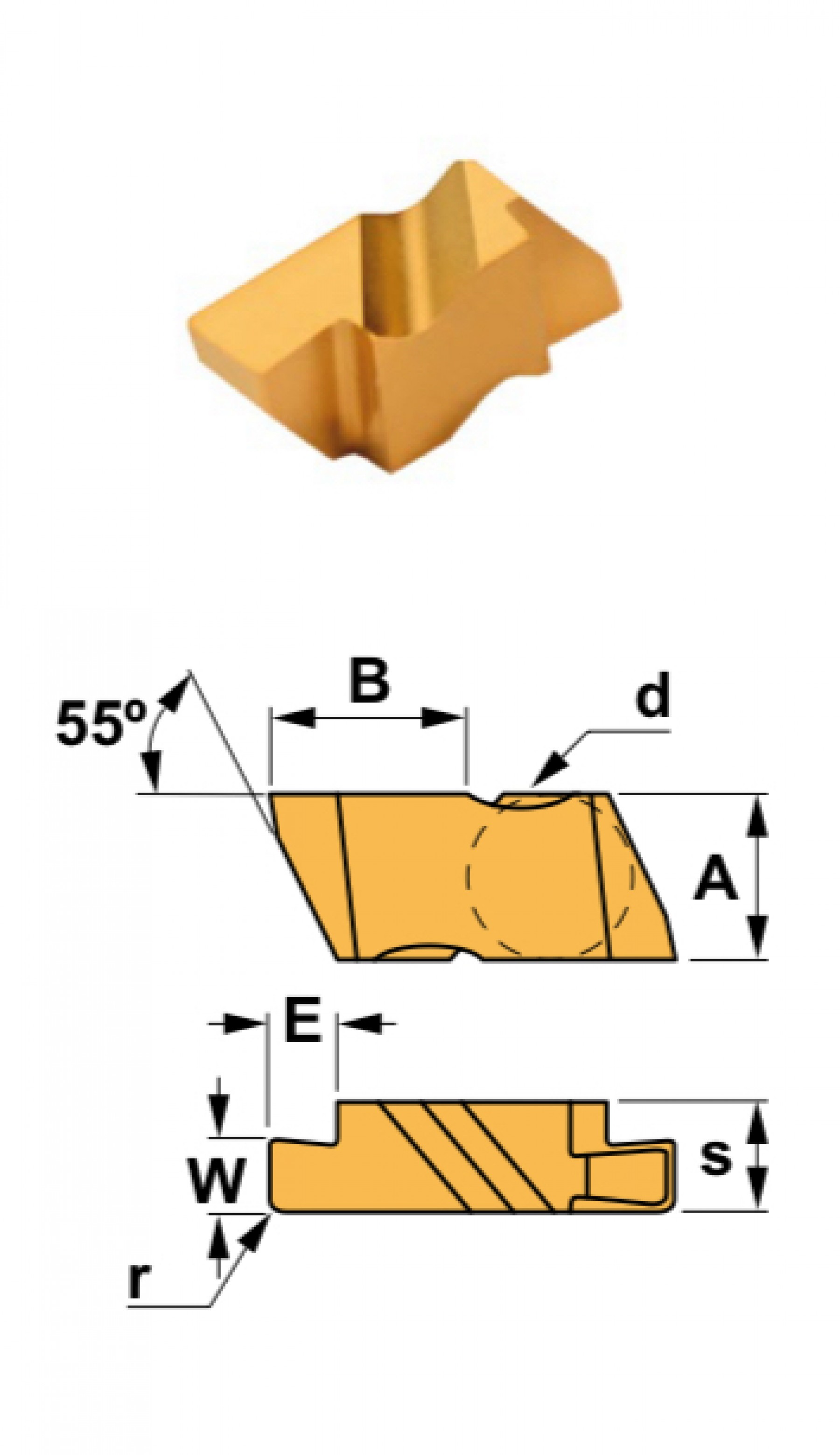 Top notch grooving insert. It is available with grades Z7(tin coated) or Z5(tialn coated). These inserts can be right or left hand. If you use an external right hand holder you can use only a ZNG _R; instead in a right hand boring bar you have to mount ZNG _L.